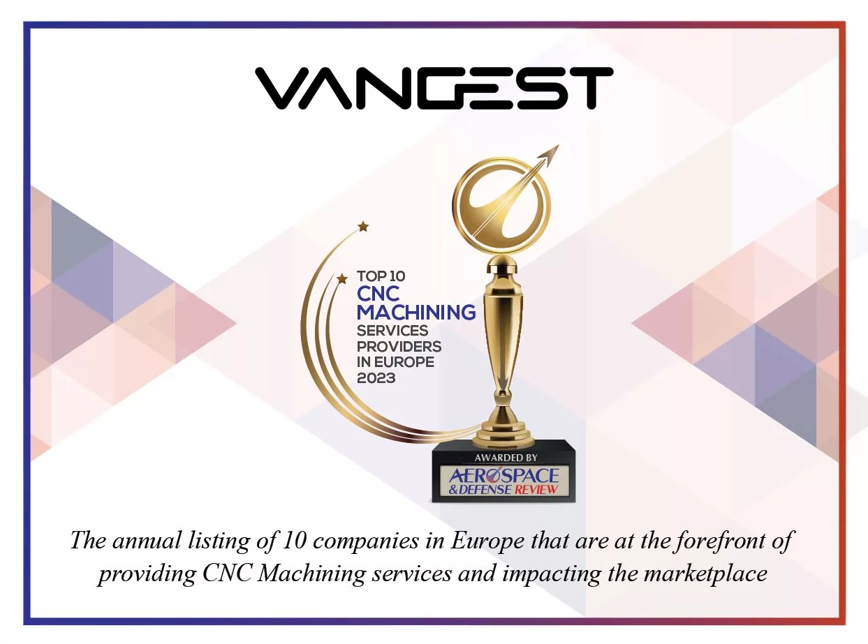 Nos complace compartir la distinción obtenida por VANGEST, reconocida por Aerospace and Defense Review, la prestigiosa revista empresarial y tecnológica del sector aeroespacial y de defensa. Hemos sido honrados con un lugar en el podio de los Top 10 Proveedores Europeos de Servicios de Mecanizado CNC.